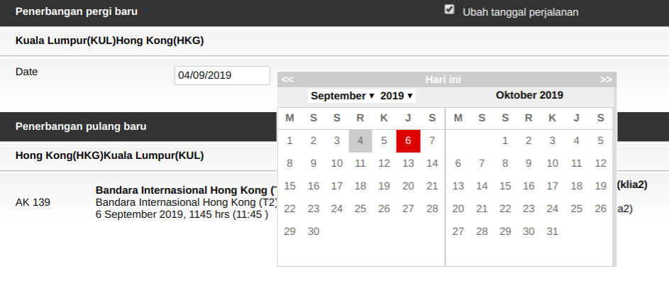Jadi selepas ini anda boleh aplikasikan cara ini ketika membuat penempahan tiket. Dalam situasi contoh ni nak tukar flight balik so tak ada masalah.